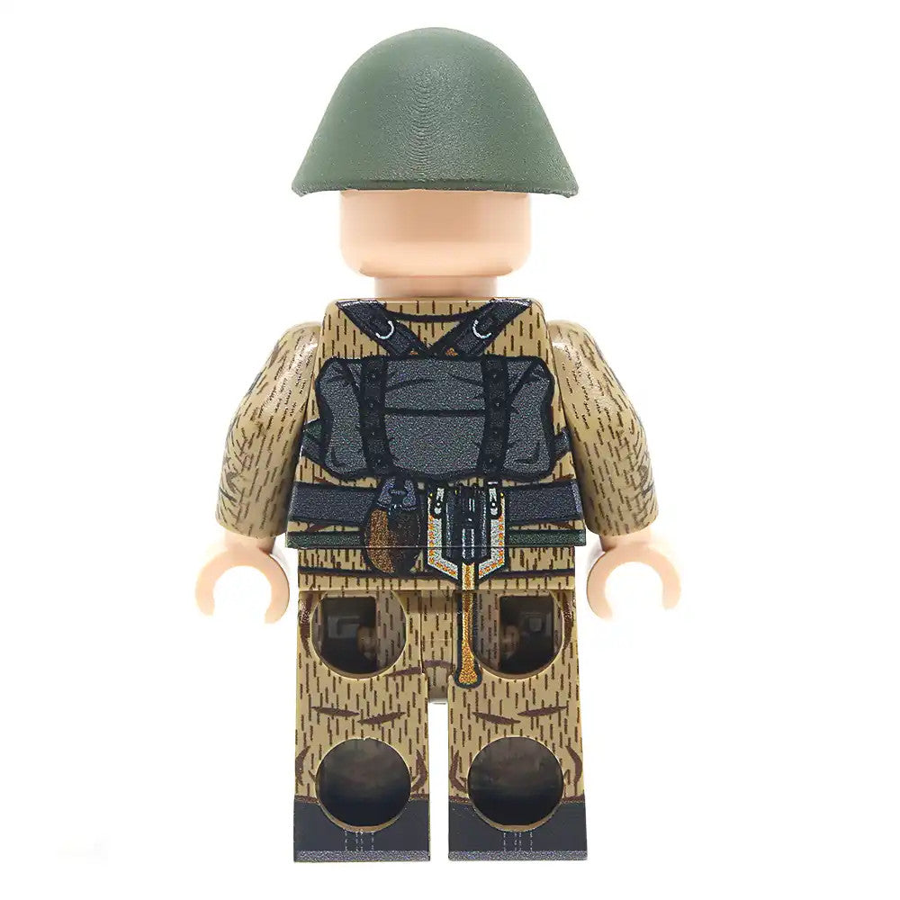 This Minifigure features a fully printed 360 torso and legs, along with a printed head. Includes custom 3D printed, hand-finished M56 Helmet and BrickArms AKM.